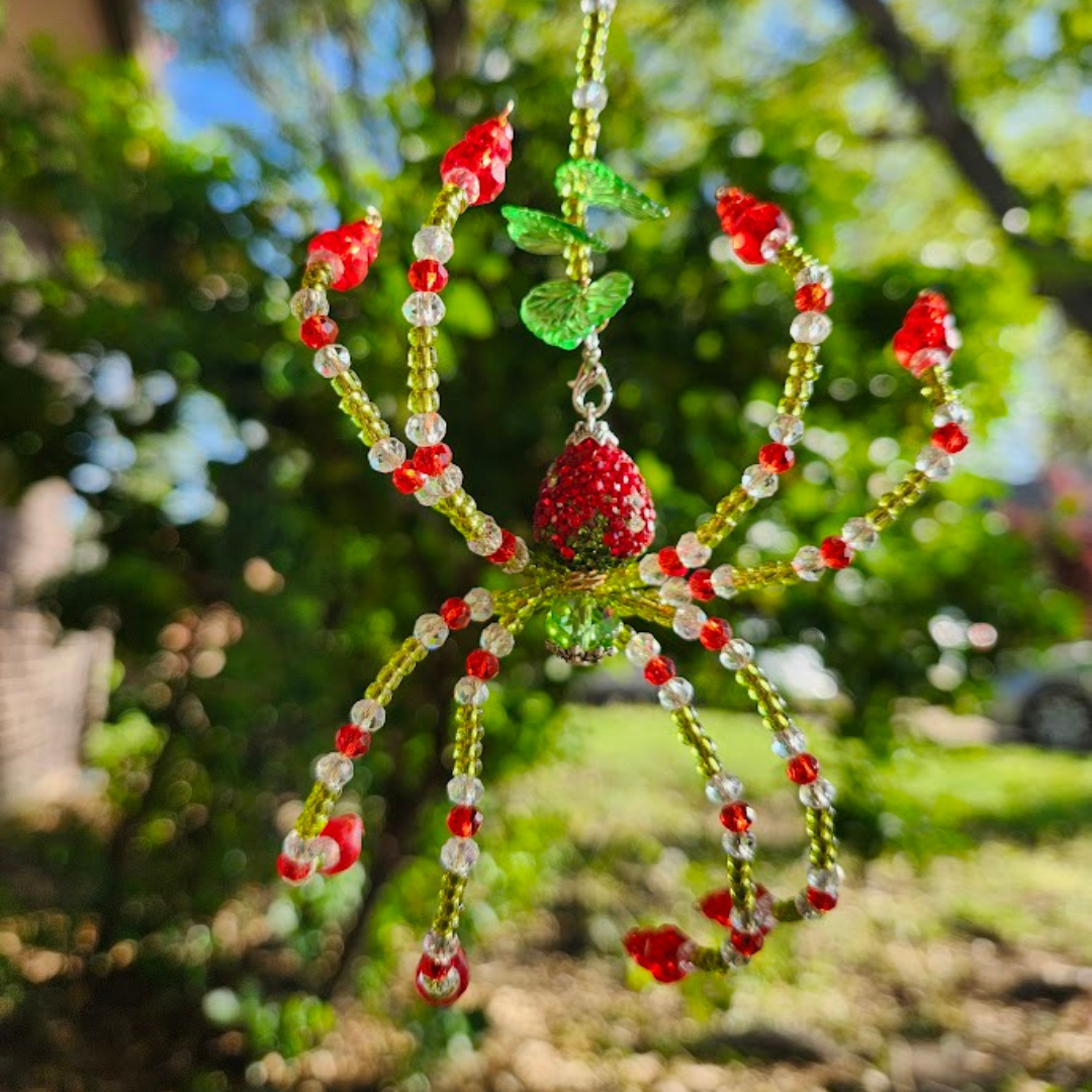 Shortcake is a 6 inch glass bead spider with decorative chain.