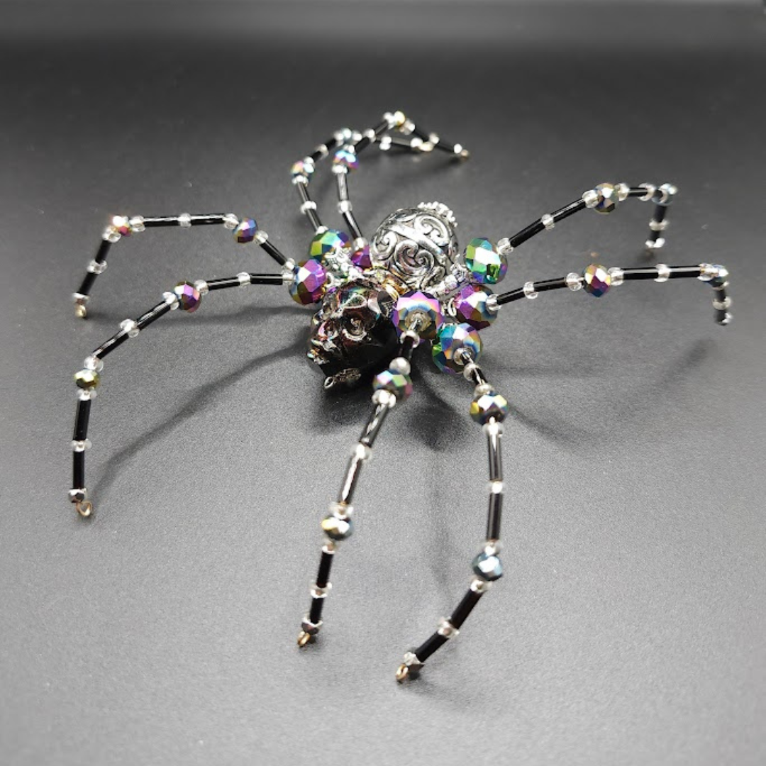 Skull is a 6 inch glass bead spider.